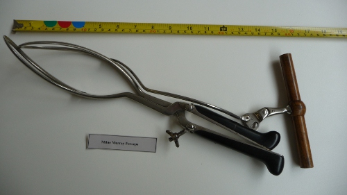 A possible early forceps used by Jacob Rueff in Zurich in 1550's are shown on the left. It is unlikely that they could be separated and